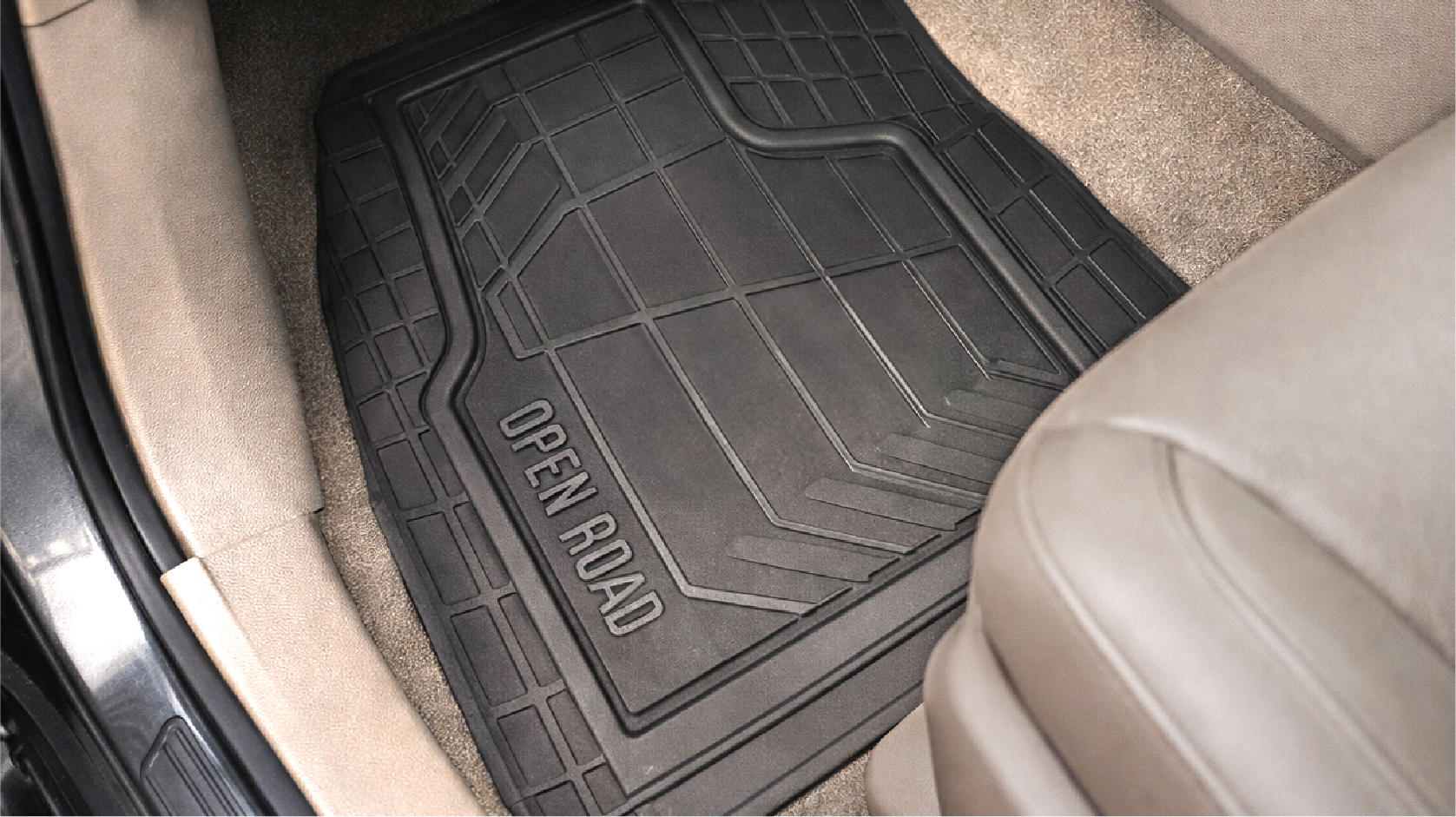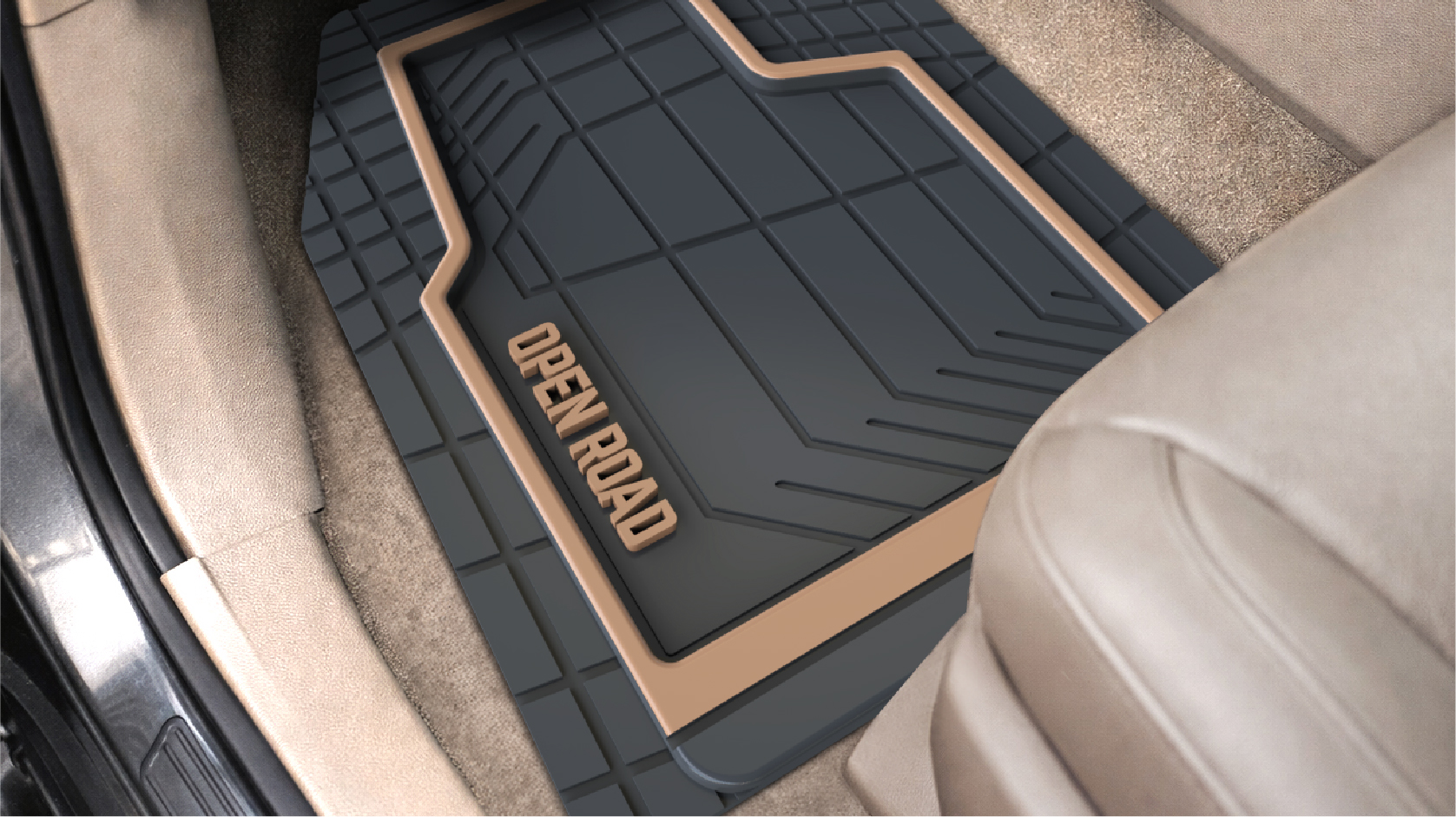 Now$4997current price Now $49.97, Was $69.99Open Road All-Weather Car Floor Mats Set, Heavy Duty Trim-to-Fit Universal Floor Liners, Front and Rear, Tan/Black/Gray