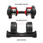 Maximize your strength training with minimal equipment using the FitRx SmartBell XL! This adjustable dumbbell lets you customize your weight in increments ranging from 10 to 90 lbs. Its simple one-handed, quick-select design makes it easy to use: just grip the handle and rotate it towards your desired weight. It also features an anti-slip handle and safety lock for seamless and secure workouts, as well as a durable storage rack that fits anywhere in your home, and holds plates when they’re not in use. Increase the weight as your strength grows and get the results you want with the FitRx SmartBell XL!