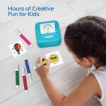 Kids can start creating in minutes. Simply draw a design or choose one from the free Kiddos app, then print it instantly with the no-ink sticker machine. After printing, they can color, decorate, and stick their creations anywhere for endless fun.
